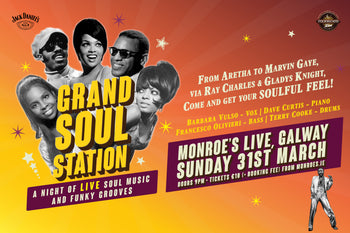Journey through the music of Aretha Franklin, Marvin Gaye, Chaka Khan, Ray Charles and more with Galway’s new soul band, Grand Soul Station at Monroe’s Live on Sunday, March 31st at 9pm.